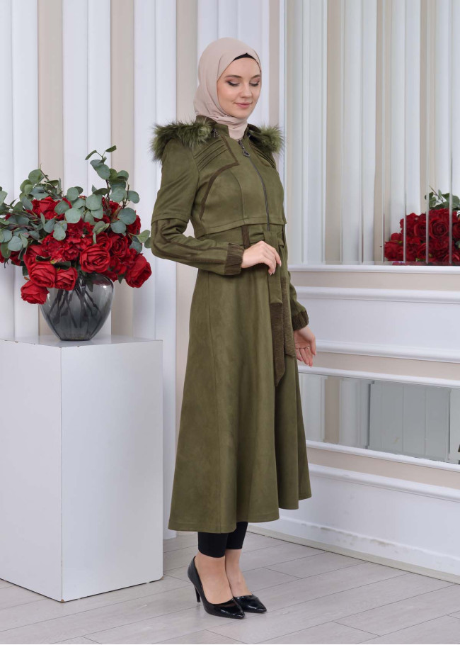 معطف شامواه طويل ببطانة فرو - كود 1373