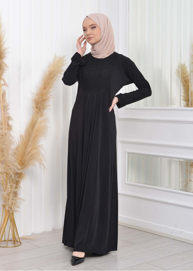 فستان عباية للمحجبات قماش ساندي ليكرا 651 - اسود