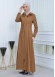 مانطو حجاب ياقة ملكية مع حزام 1213 - ترابي