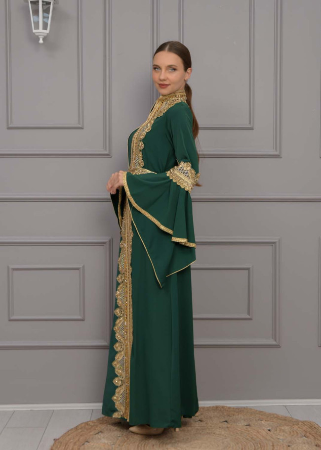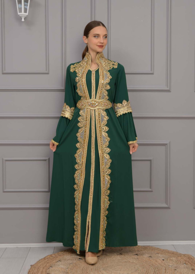 ميزة المنتج: قفطان جيسيكا دبي المصنوع من قماش الجيسيكا يتألف من قطعتين. القطعة الخارجية مصممة بتطريز دهبي اللون، مما يضفي على القفطان لمسة فخامة وجمال. القطعة الخارجية تكون واسعة وتمتد على طول الجسم، مما يوفر راحة وحرية في الحركة. الإكمام عريضة عند الأطراف، مما يضفي لمسة من التفصيل والأناقة على القفطان. تتناسب هذه الإكمام مع القصة الواسعة للقفطان وتضفي لمسة أنثوية جميلة. يتميز القفطان بحزام دهبي عند الخصر، يمكن ربطه لإبراز القوام وإضافة تحديد إلى القفطان. يمكن تعديل الحزام وفقًا للرغبة للحصول على مظهر ملائم ومريح.بشكل عام،قفطان مصنوع من قماش الجيسيكا قطعة فاخرة وأنيقة، تجمع بين التفاصيل الدقيقة والراحة في الحركة. إن استخدام القماش عالي الجودة والتطريز الدهبي يعطي القفطان لمسة فاخرة وجمالية.
