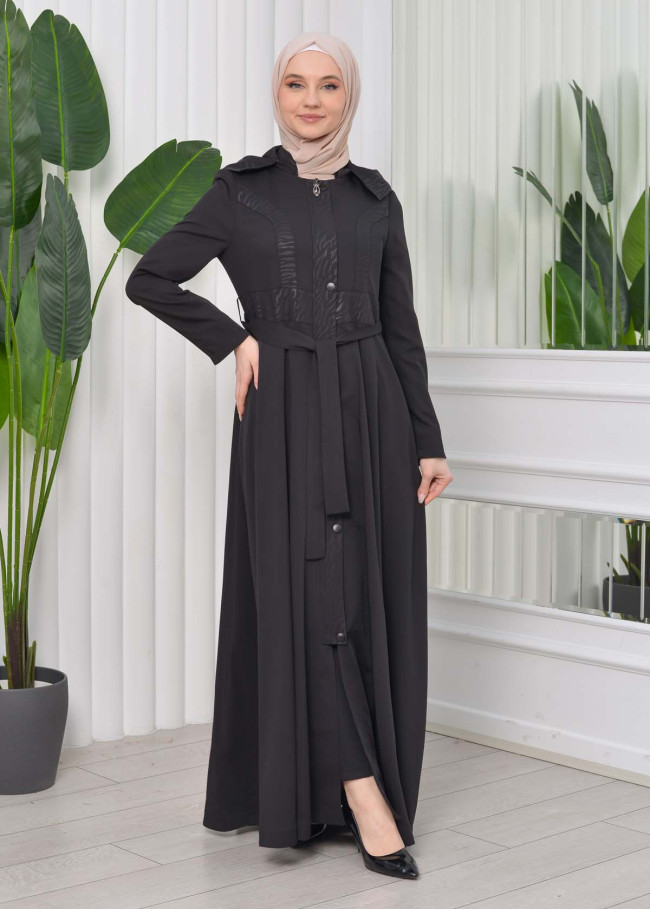 ميزة المنتج: إنه منتج أزياء للمحجبات للموسم الجديد. تصميم الموديل له أزرار من نوع كبس و سحاب مخفي من االقسم الامامي تحت الازرار