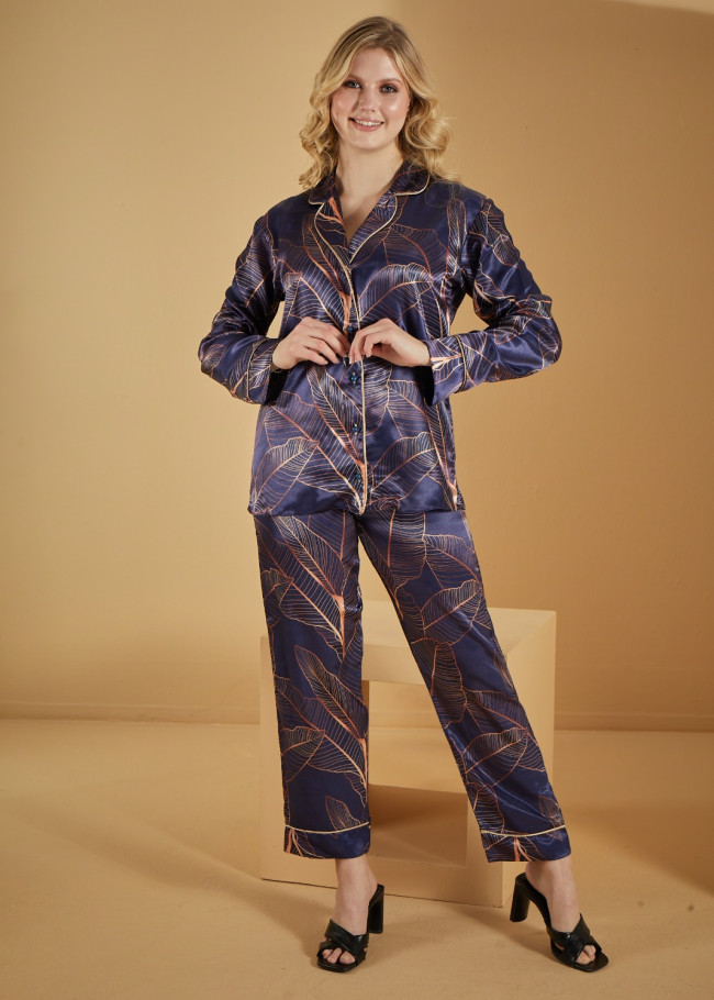 بجامة كحلي ساتان معرقة 3-1091