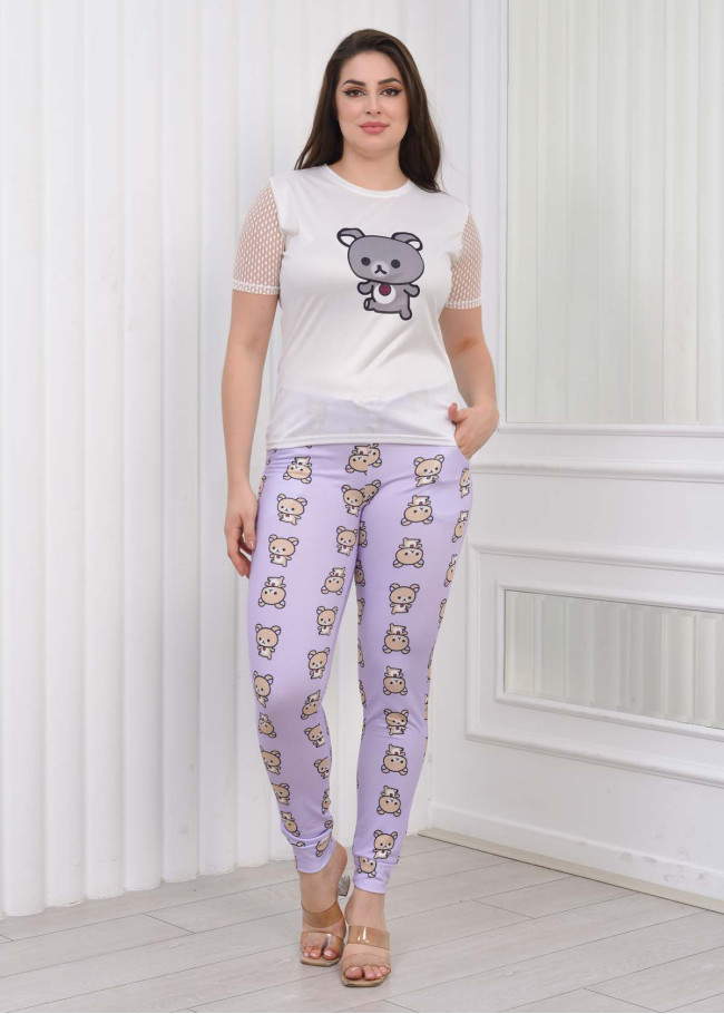 طقم تي شورت بيجاما نسائي قطعتين كود -1081 - ليلك