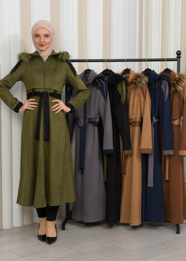 معطف شامواه طويل ببطانة فرو - كود 1373